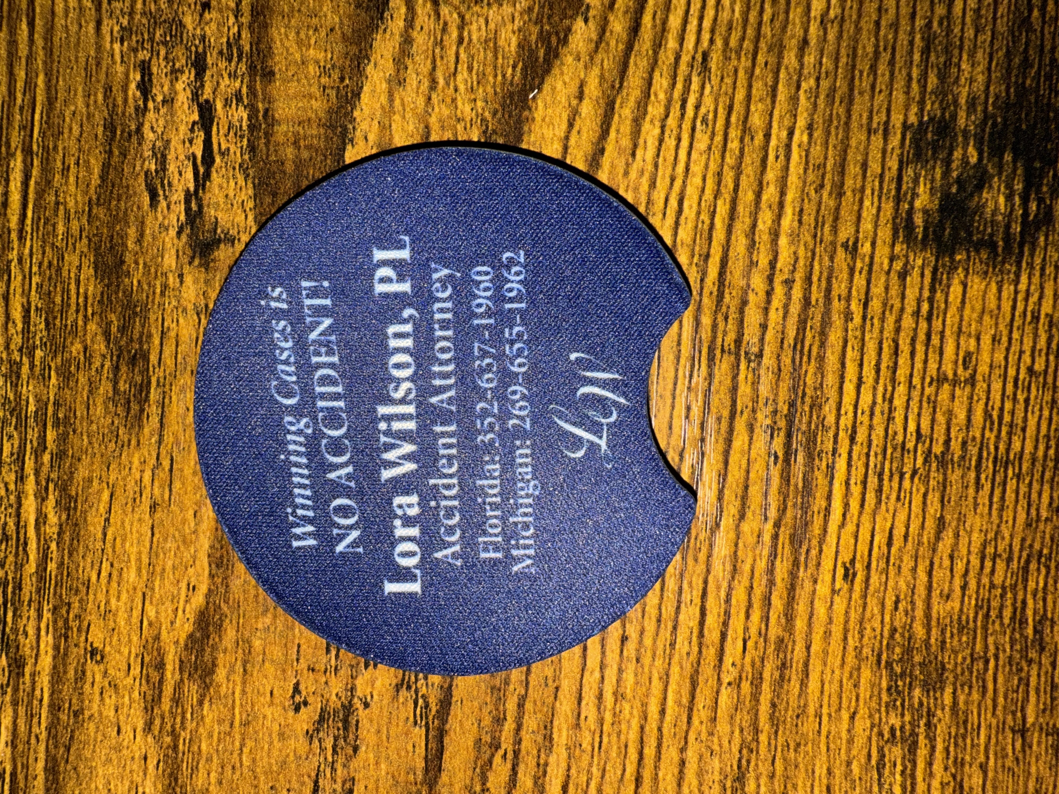 Car Coasters – keep your drink from sweating in the car cup holder and our number handy!